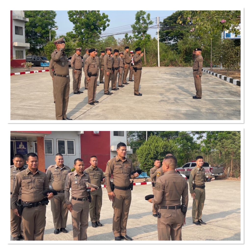 พ.ต.ต.พยัคฆ์ เขจรลัย สว.สสฯ พ.ต.ต.สนอง แดงรักษ์ สวส.ฯ นำข้าราชการตำรวจ สภ.รำมะสัก ทุกสายงาน