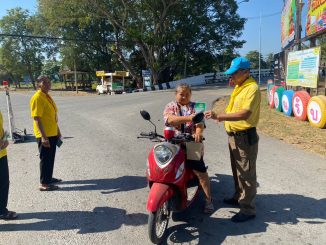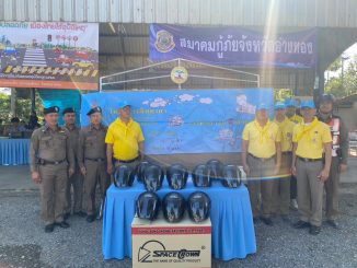 แจกหมวกนิรภัยช่วงเทศกาลสงกรานต์